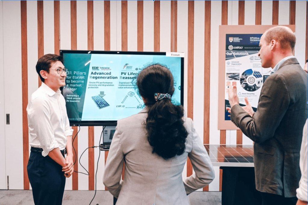 Etavolt presented its one stop solar solution to Prince william at EcoLabs Centre of Innovation for Energy, ERI@N NTU. The ongoing pursuit of establishing and improving the circular economy within the realm of solar energy is progressing, thanks to Etavolt’s cutting-edge solutions in this domain.